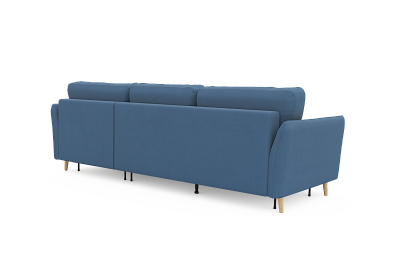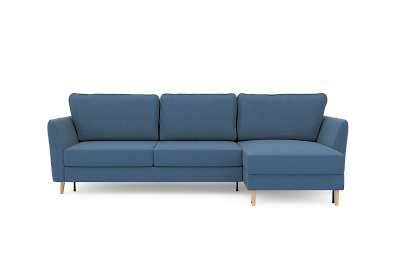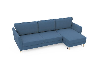 Диван АННИКА NEW 3-х местный с оттоманкой и светлыми опорами Темно-синий (Woolly 783) , Рогожка