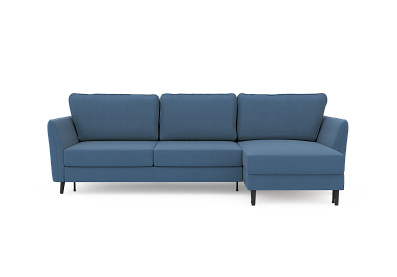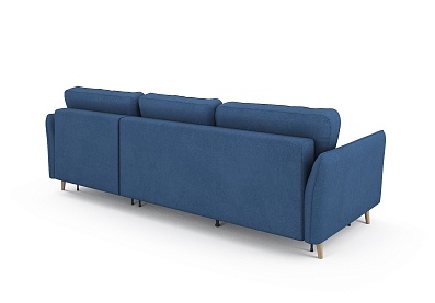 Диван АННИКА NEW 3-х местный с оттоманкой и светлыми опорами Темно-синий (Woolly 783) , Рогожка
