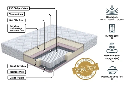 Матрас Anatomic dream Pro 120 х 190 Разная жесткость сторон с пружинным блоком