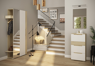 Шкаф Анри АН-200.09 с полкой, штангой для одежды и двумя выдвижными ящиками Швейцарский вяз, Белый