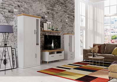 Шкаф Магнум для гостиной с полками Блан-шене, Дуб бунратти