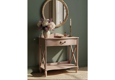 Чтобы не загромождать пространство спальни, некоторые решают приобрести столики туалетные без зеркала. Вариант осуществляется без весомых потерь, если в комнате имеется шкаф, оснащенный ростовым зеркалом. Решение смотрится оригинально и удобнее в плане свободного места на поверхности стола. Также к данному варианту обращаются, если зеркало уже имеется и расставаться с ним не хочется.
