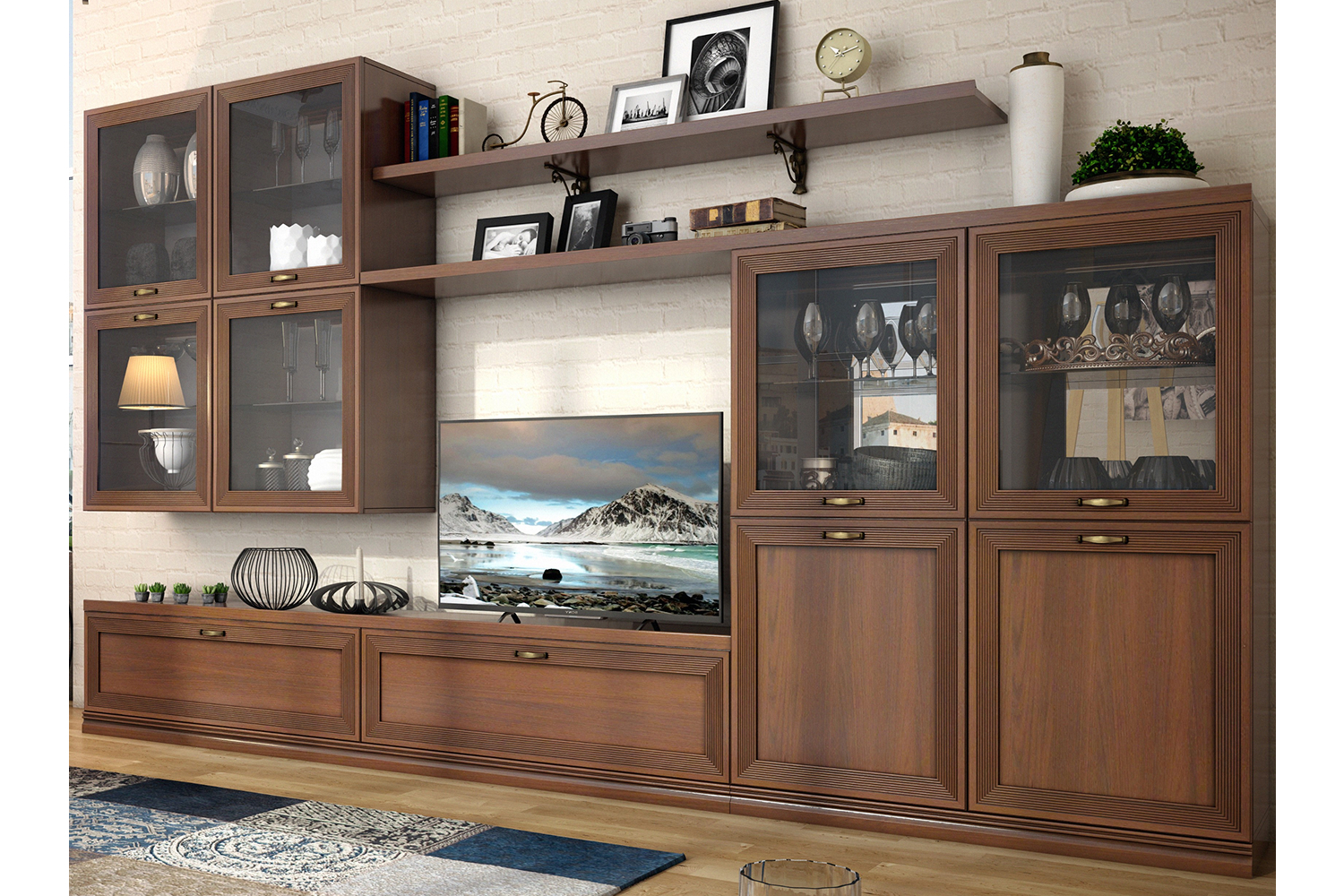 - Отделка фасадов выполнена испанским акриловым лаком и патиной (эффект состаренного дерева);