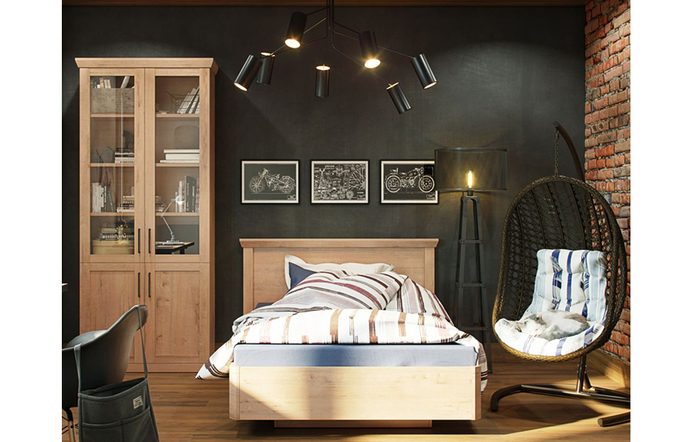 – описание: размер спального места 120 х 200 см, цвет дуб бунратти, стиль скандинавский, лофт, современный.