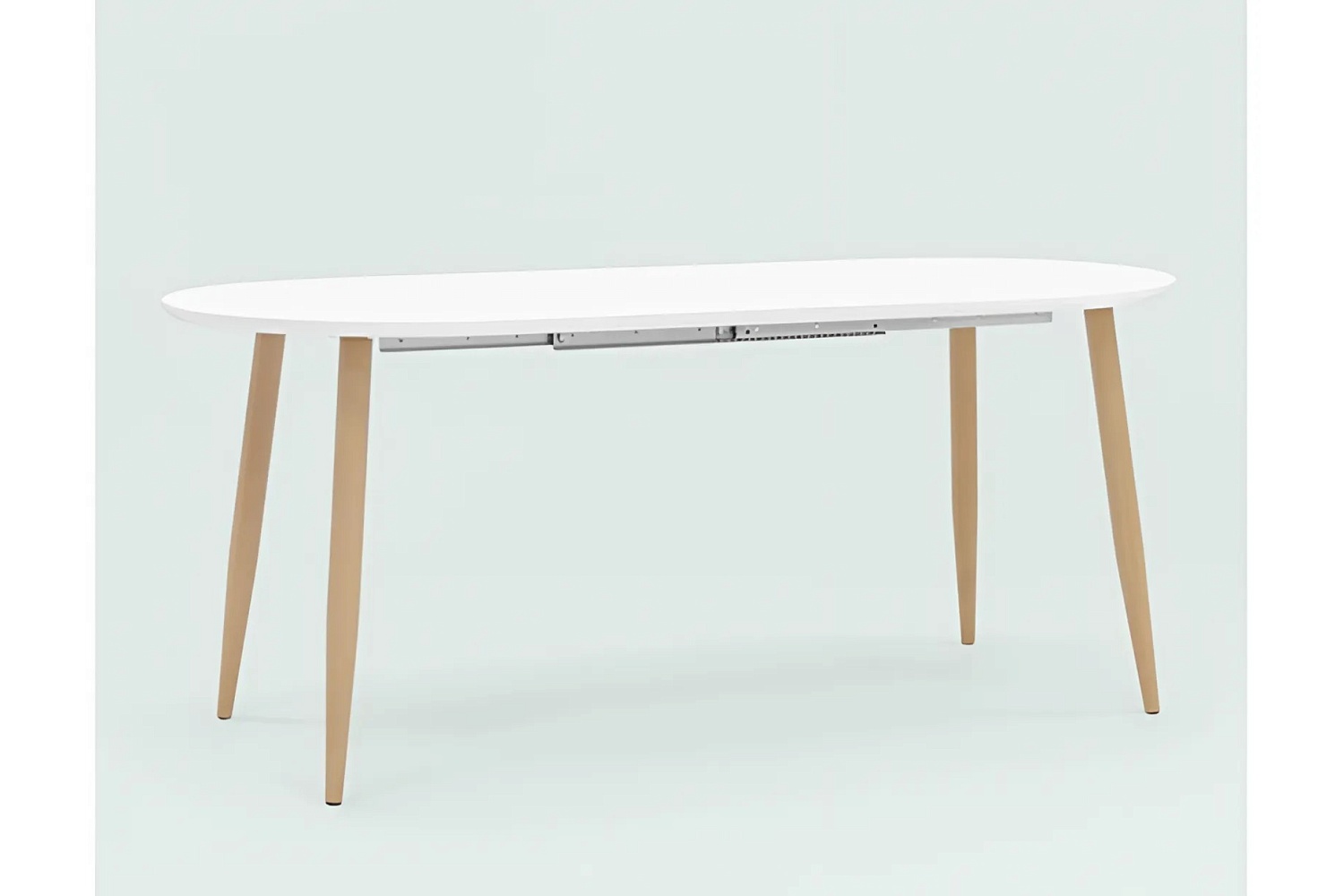 Цвет столешницы – белый, ножки металлические, покрашены в цвет светлого дерева.