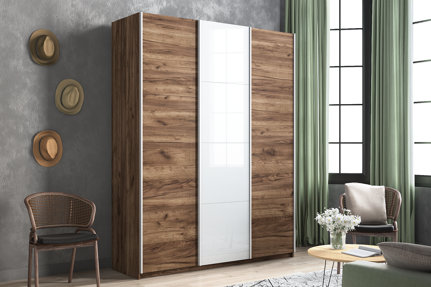 – описание: назначение для одежды, стиль современный, цвет дуб табачный, размер 230x180x57 см.