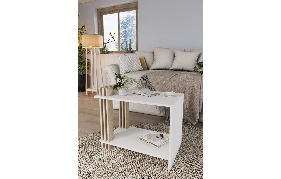 Купить Стол журнальный Троя Белый, Гикори Рокфорд в интернет-магазине мебели «Ангстрем»