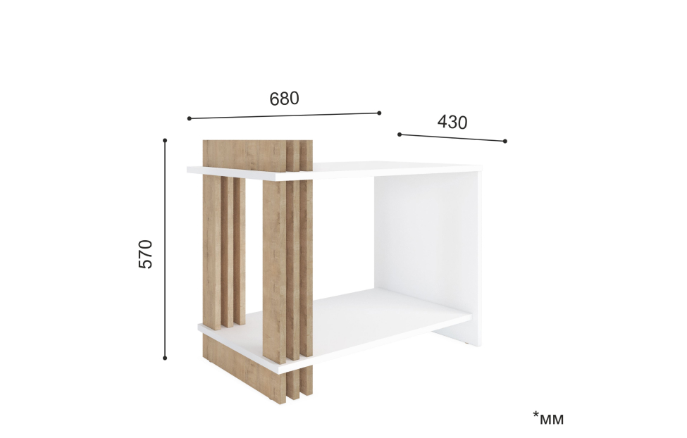 – описание: размер 57x68x43 см, цвет белый, дуб бунрати, стиль минимализм, скандинавский, современный, назначение для дома.