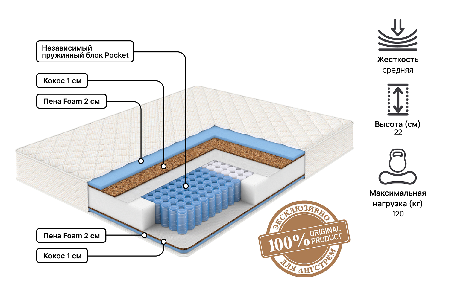 Купить Матрас Smart 140 х 200 в интернет-магазине мебели «Ангстрем»